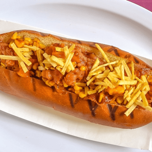 Beef hot dog with chilli