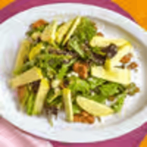 Mixed green, apple, walnuts, goat cheese & basil vinaigrette on the side